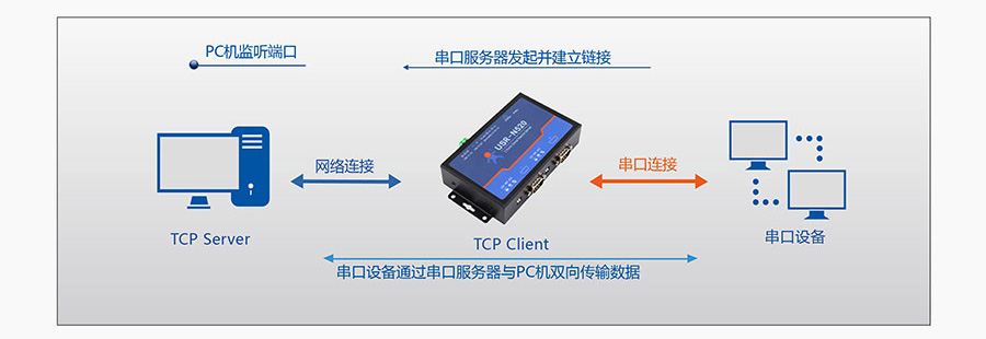 串口服務器向設定的IP地址發起TCP鏈接,若鏈接失敗,串口服務器將不斷嘗試重連直到成功。