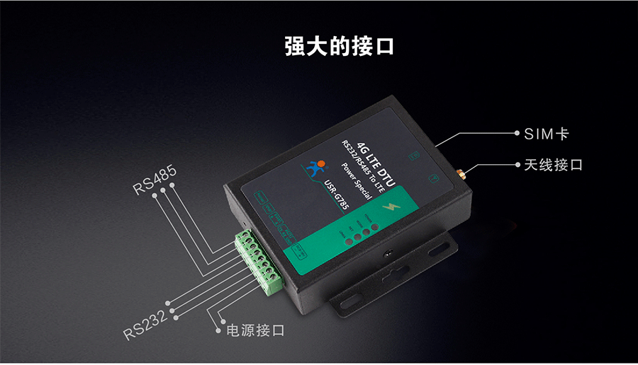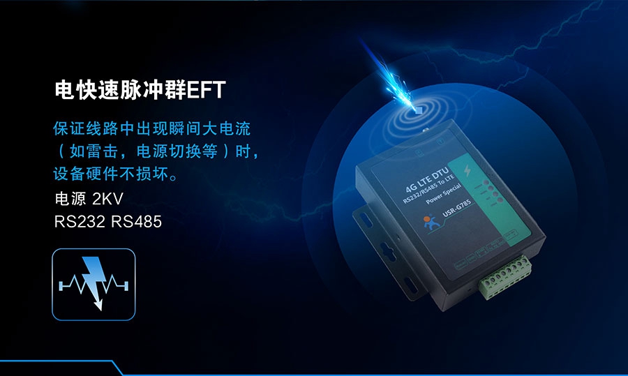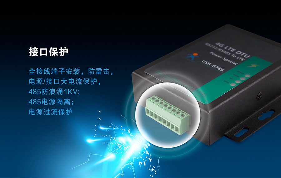 USR-G785 是一款高穩定、抗干擾的工業級無線數據傳輸終端,專為電力行業設計,為苛刻環境下無人值守的電力項目,提供穩定的網絡通信。既可以實現常規 DTU 的數據透傳功能,也可以實現電力專屬協議透傳功能。通過簡單的 AT指令進行設置,即可輕松使用本產品實現串口到網絡服務器的雙向數據傳輸。
