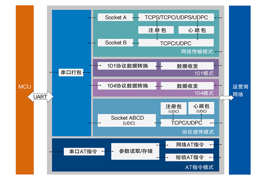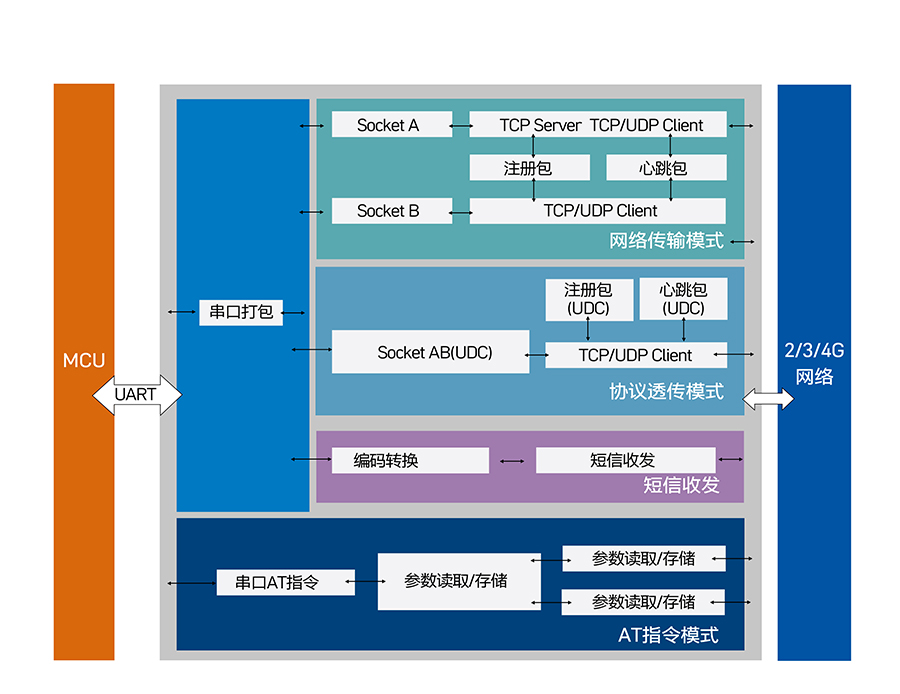 此模式下,用戶的串口設備可以通過DTU發送數據到指定的服務器上,DTU也可以將服務器的數據轉發到串口設備上。