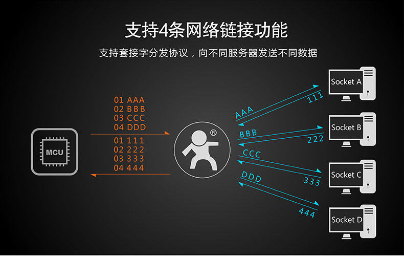 支持通過協(xié)議向不同Socket發(fā)送數(shù)據(jù)