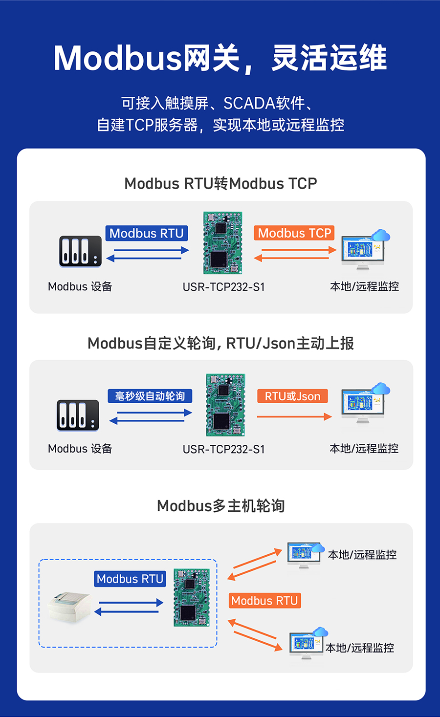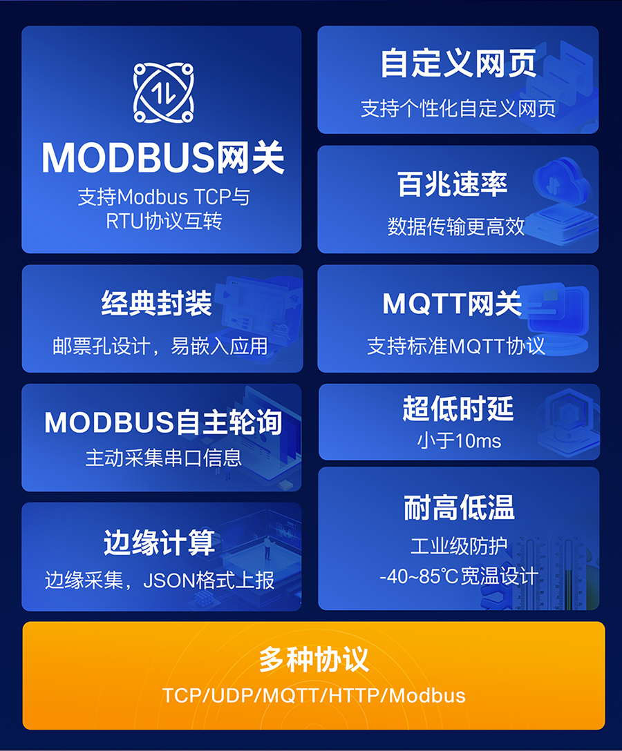 支持ModbusTCP/RTU協議轉換、Modbus多主機輪詢、Modbus自定義輪詢