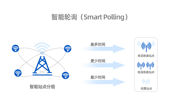 業界聞名的iPoll 3智能輪詢無線協議 iPoll 3 PTMP(點對多點)專有協議是基于TDMA時分多址技術的創新無線協議,不僅可以消除傳輸擁堵和戶外遠距離點對多點傳輸場景中產生的自身干擾,更能通過最新的智能輪詢機制根據已連接站點的活躍度對站點進行分組,需要更少帶寬的站點被分到低活躍或空閑組,分配更少的通信時長(輪詢次數更少),而需要更大流量或帶寬的站點被分到活躍組,分配更多的通信時長(輪詢次數更多)。通過減少輪詢站點的總次數,實現更低的延遲和更高的總吞吐量,即使是1對64以上的點對多點組網,網絡整體效率也不會出現明顯的下降。