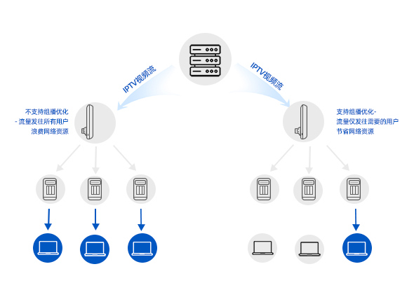 支持組播優化 組播優化功能讓組播流量僅發往有需要的終端,避免網絡資源的浪費
