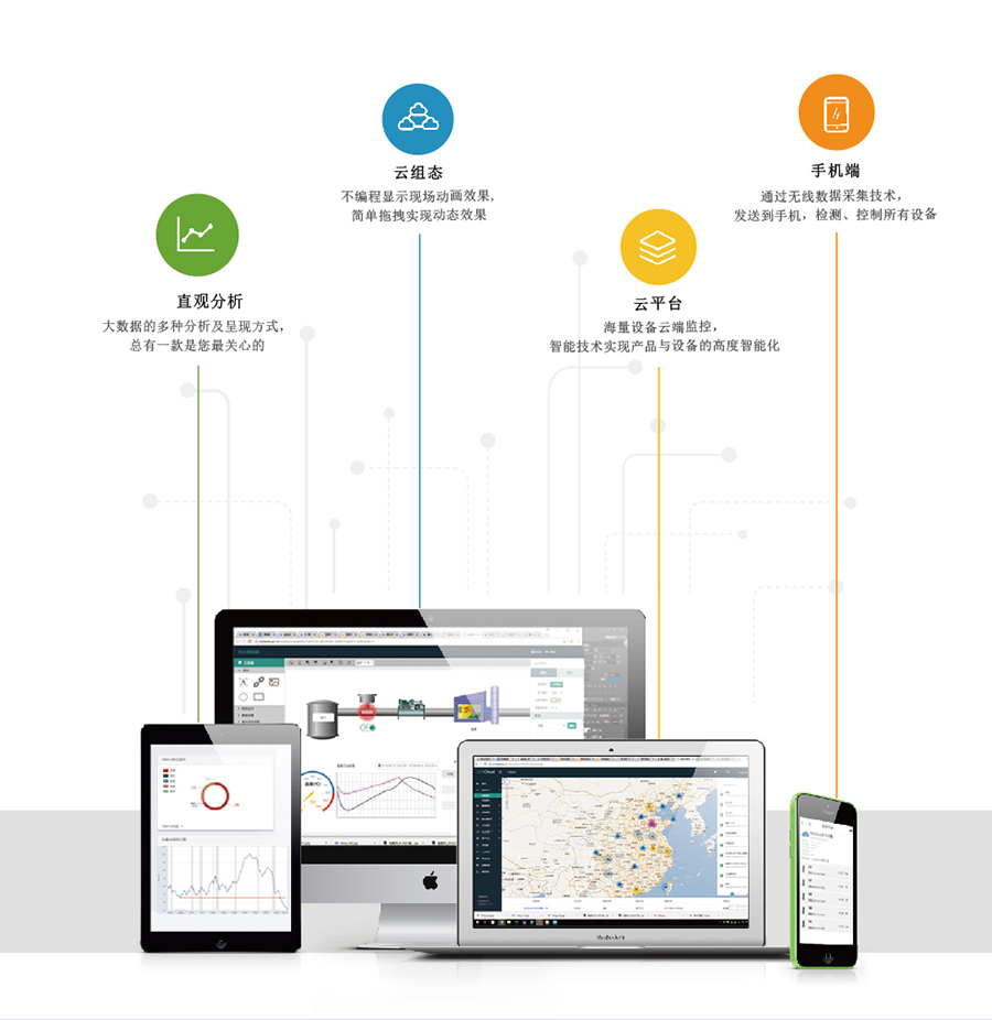有人聯(lián)網(wǎng)+接口豐富,內(nèi)含多種通訊協(xié)議,可連接國內(nèi)外知名品牌PLC和HMI設(shè)備,支持遠(yuǎn)程程序更新和上下載,遠(yuǎn)程控制監(jiān)控,使變成調(diào)試人員遠(yuǎn)程更新程序和監(jiān)控故障信息變成可能,為企業(yè)節(jié)省大量的出差費用,降低售后成本。